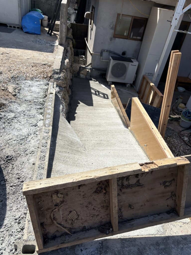 今まで急な階段を撤去し、スロープ工事を行いました。