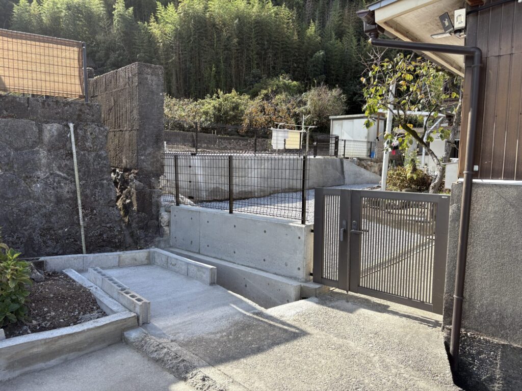 工事のため擁壁を解体したので出入口の復旧工事を行いました。